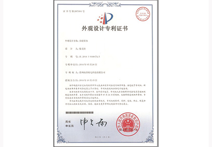 Appearance design patent certificate